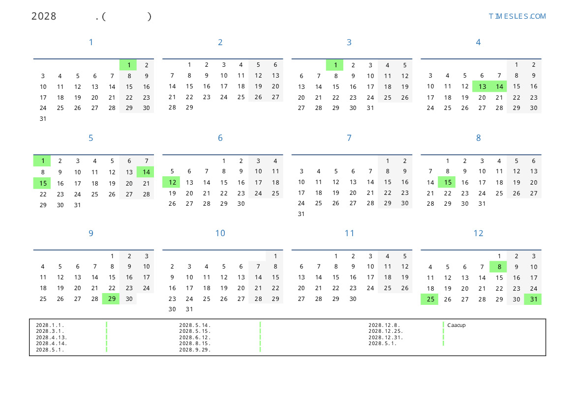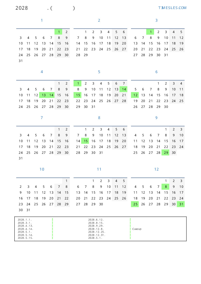 그레고리 안, 윤년, 1 년에 366 일. 2028년 파라과이 21 공휴일 및 휴무 있습니다. 중국 동부 달력에서 2028 년은 원숭이의 해입니다. 연도는 토요일에 시작하여 일요일에 끝납니다.