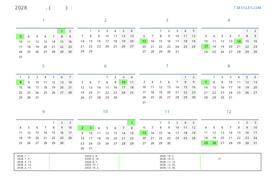 그레고리 안, 윤년, 1 년에 366 일. 2028년 투발루 20 공휴일 및 휴무 있습니다. 중국 동부 달력에서 2028 년은 원숭이의 해입니다. 연도는 토요일에 시작하여 일요일에 끝납니다.