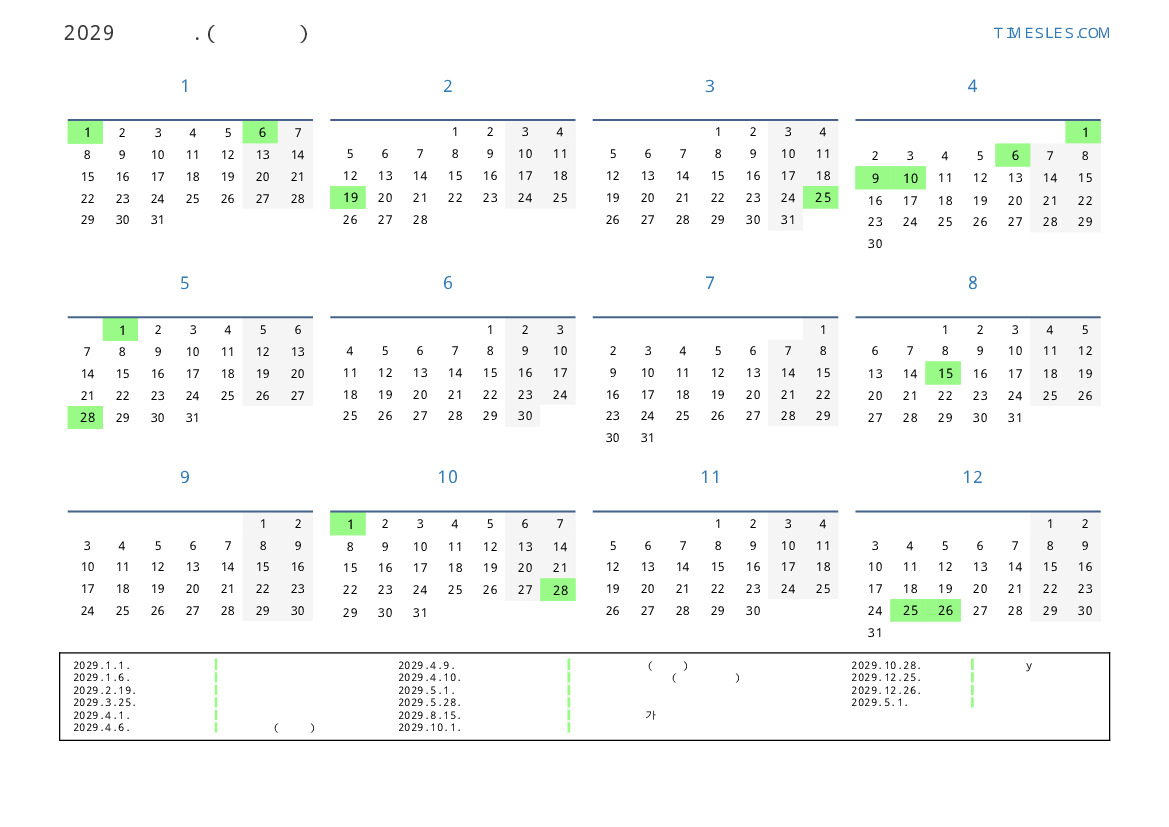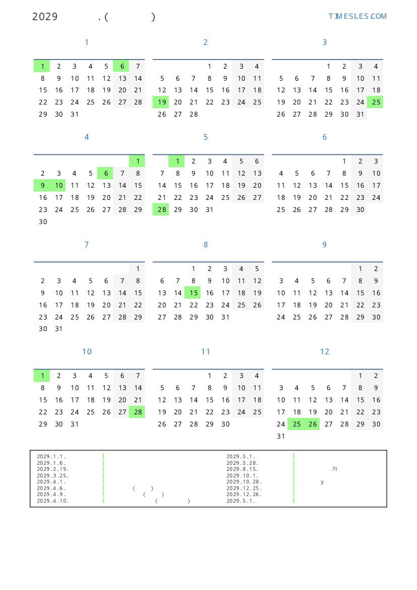 키프로스 2029 년 달력