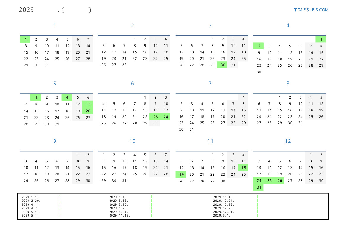 라트비아 2029 년 공휴일 및 주말이 포함 된 PDF 캘린더 다운로드 및 인쇄