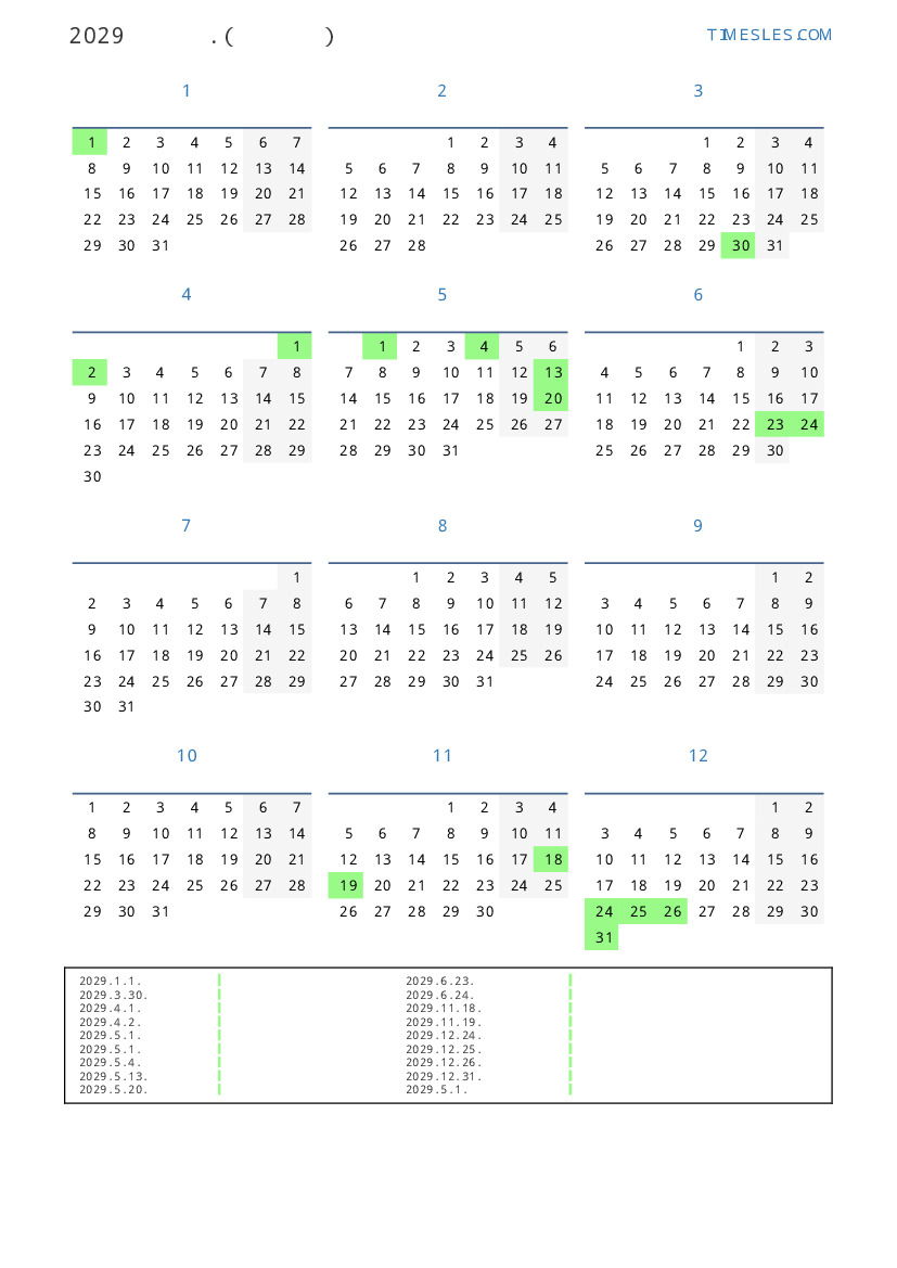 라트비아 의 2029 년 공휴일 및 주말 달력