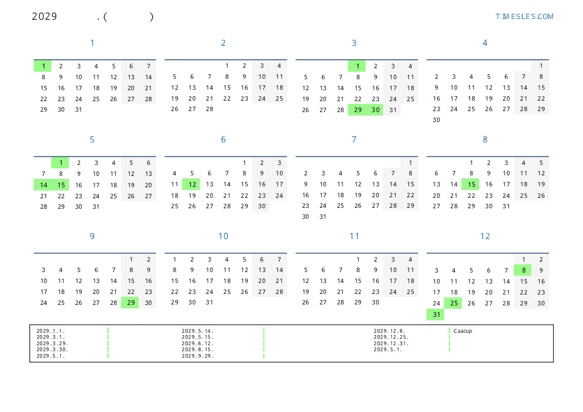 그레고리 안, 윤년이 아니다, 1 년에 365 일. 2029년 파라과이 21 공휴일 및 휴무 있습니다. 중국 동부 달력에서 2029 년은 수탉의 해입니다. 연도는 월요일에 시작하여 월요일에 끝납니다.