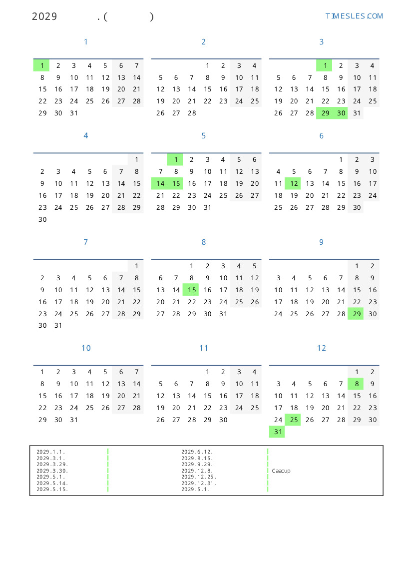 파라과이 2029 년 공휴일 및 주말이 포함 된 PDF 캘린더 다운로드 및 인쇄