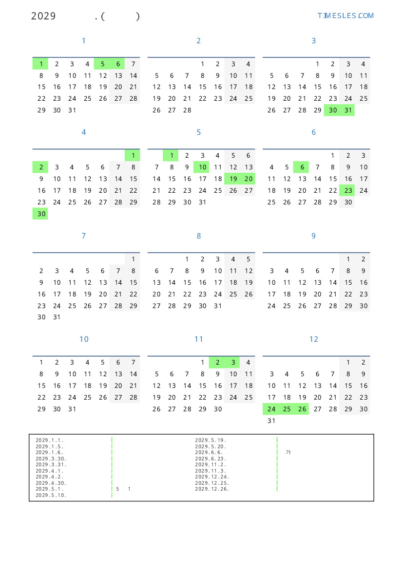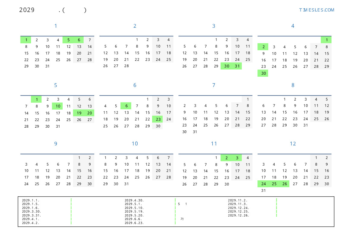 스웨덴 2029 년 공휴일 및 주말이 포함 된 PDF 캘린더 다운로드 및 인쇄