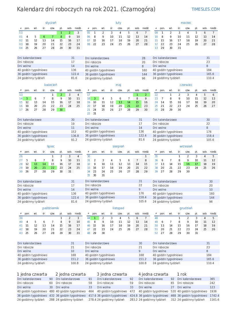W 1. kwartale 2021 r. w Czarnogórze są 6 święta i dni wolne. 1 kwartał 2021 rozpoczyna się w piątek, a kończy w środę.