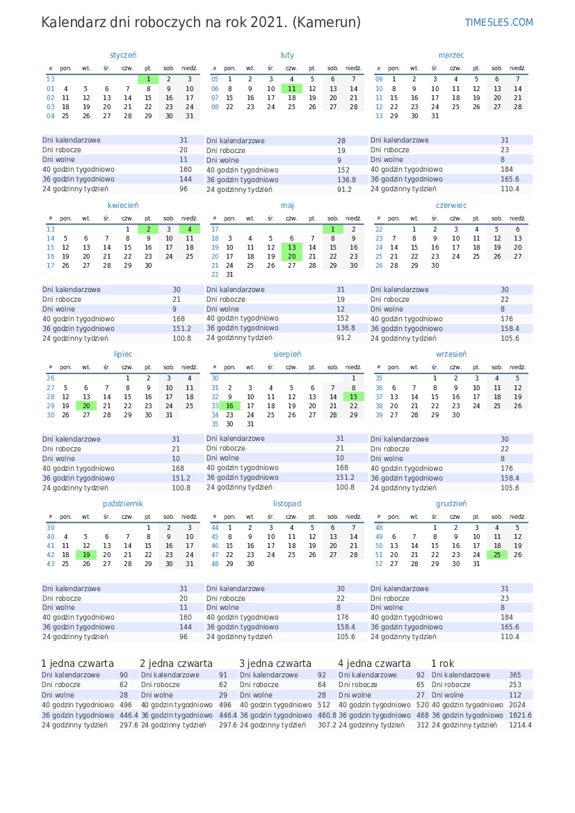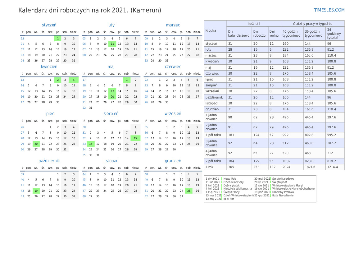 Kalendarz na 3. kwartał 2021 r. dla Kamerunu