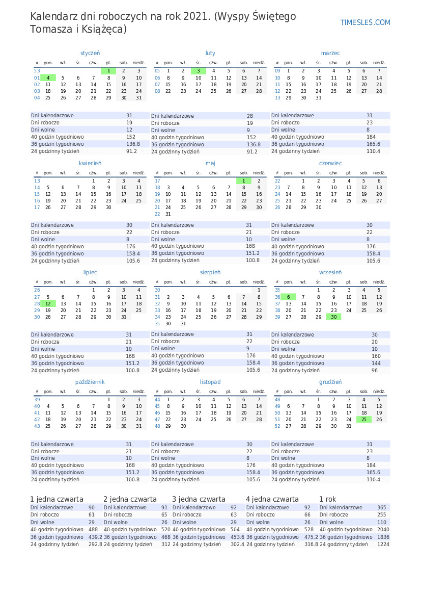 W 4. kwartale 2021 r. na Wyspach Świętego Tomasza i Książęcej są 2 świąt i dni wolnych. 4 kwartał 2021 rozpoczyna się w piątek, a kończy w piątek.