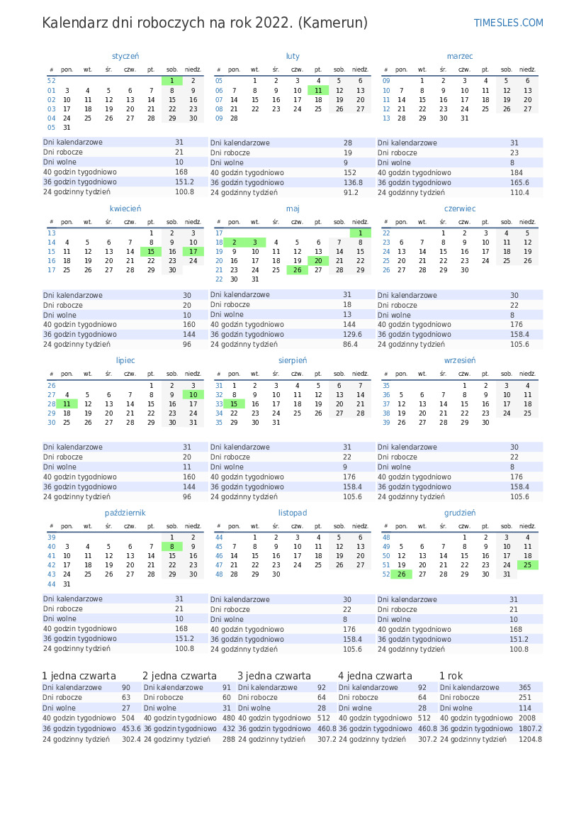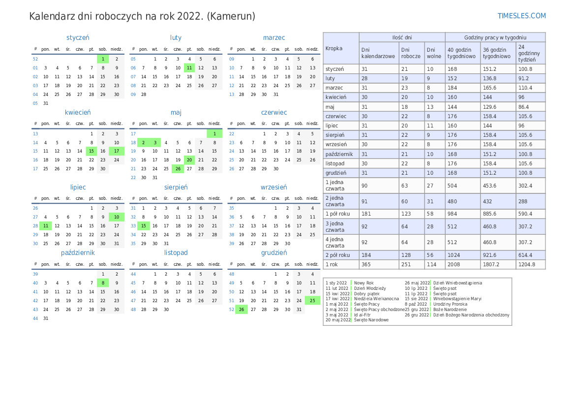 Kalendarz na 1. kwartał 2022 r. dla Kamerunu