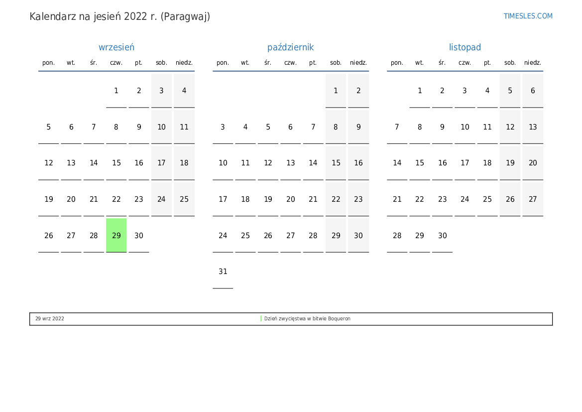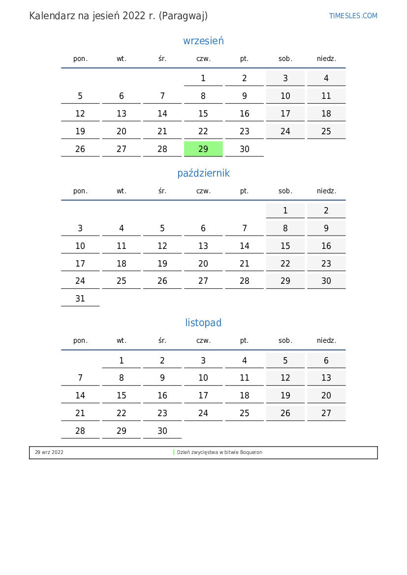 Kalendarz na jesień 2022 r. dla Paragwaju