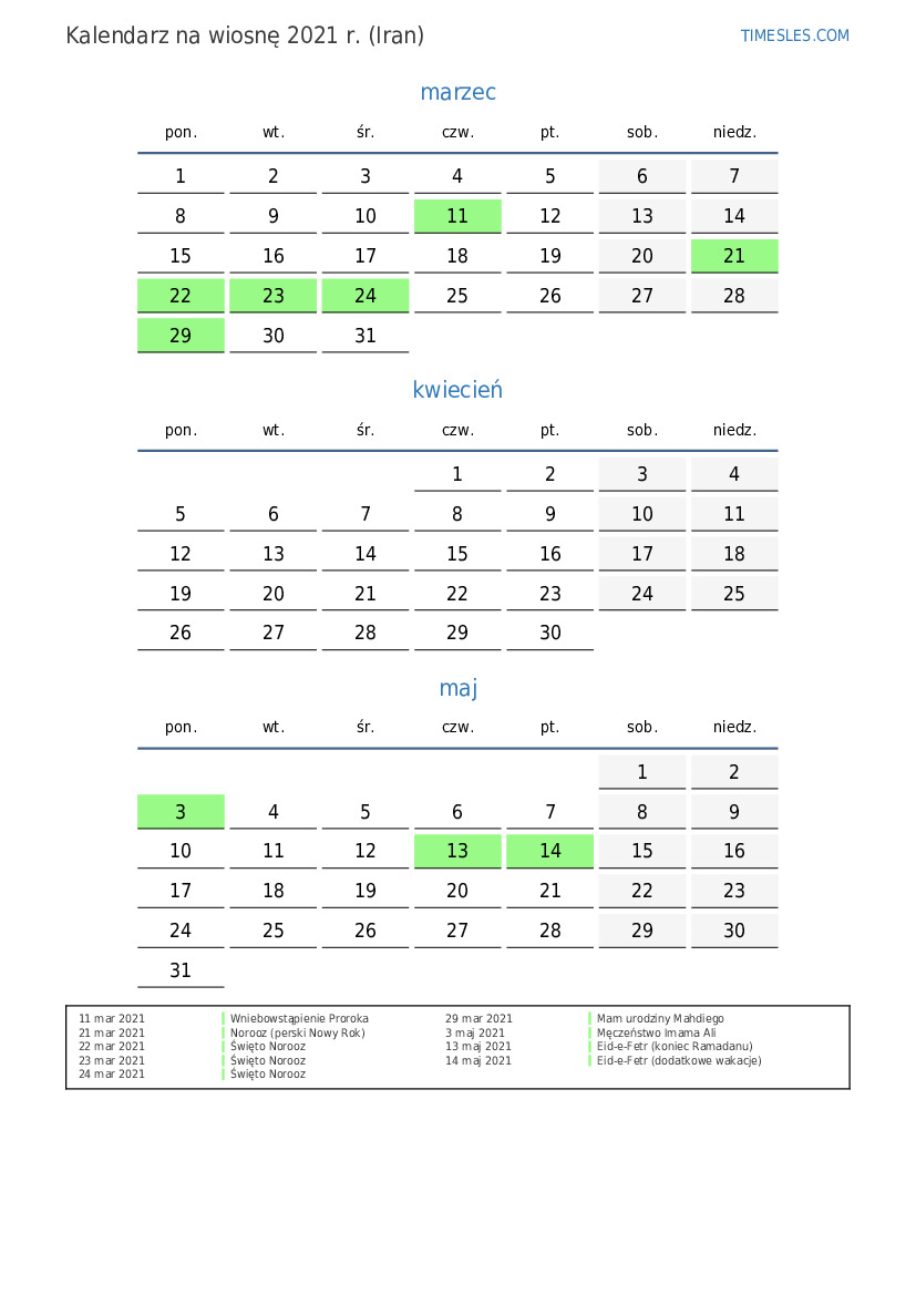 14 maj 2021 Eid-e-Fetr (dodatkowe wakacje)