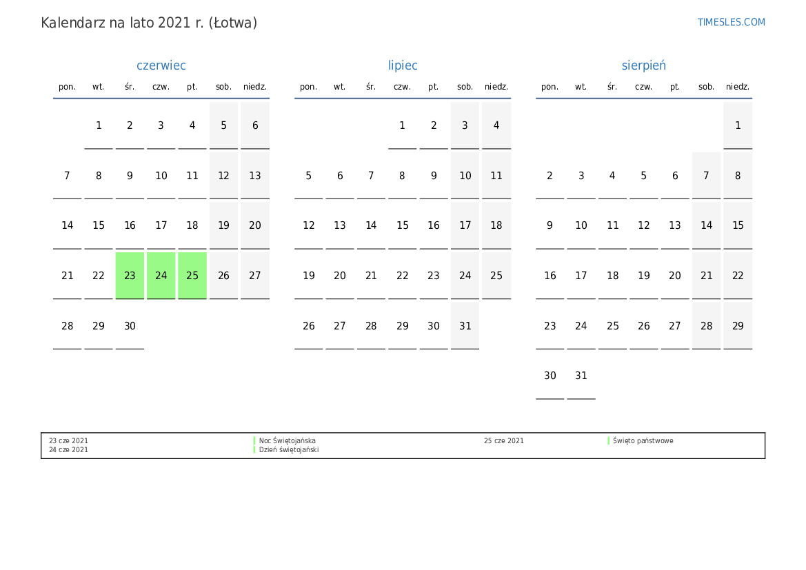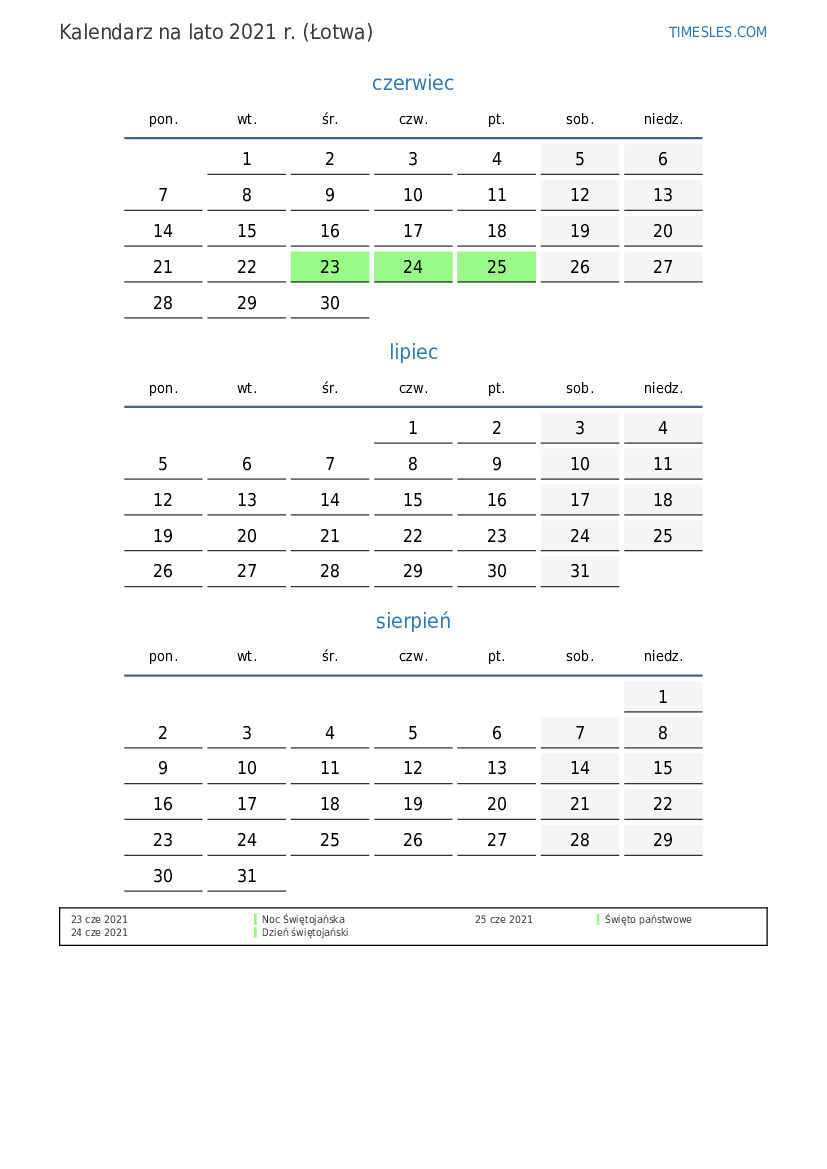 Kalendarz na lato 2021 r. dla Łotwy