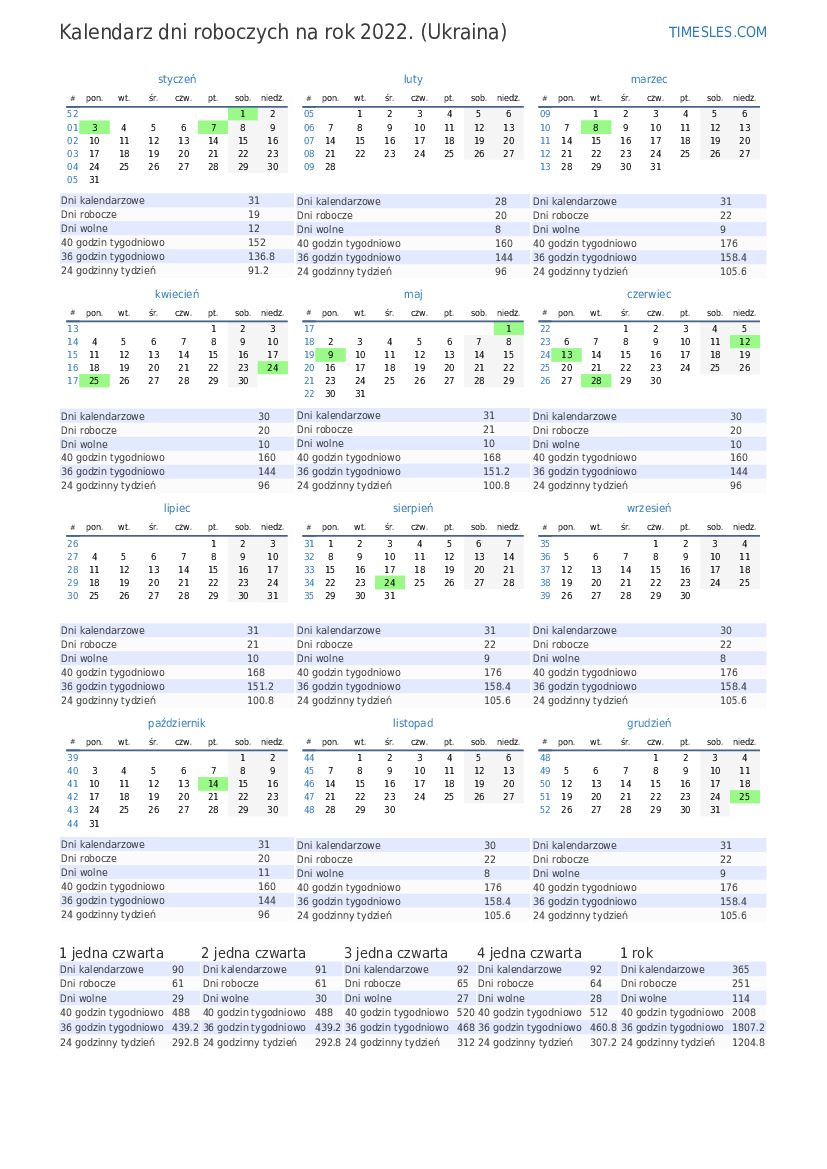 Dni robocze dla luty 2022 r. dla Ukrainy