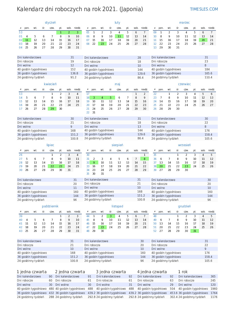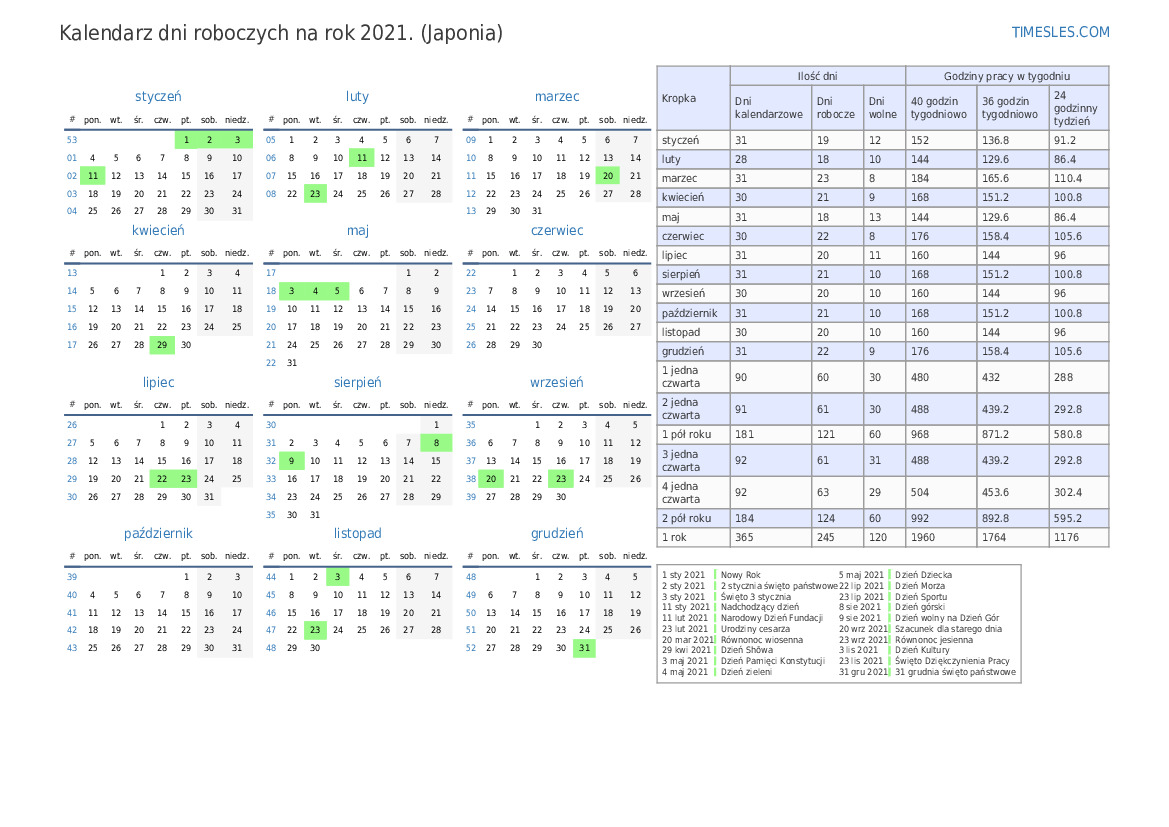 | 40 godzin tygodniowo | 480 |
