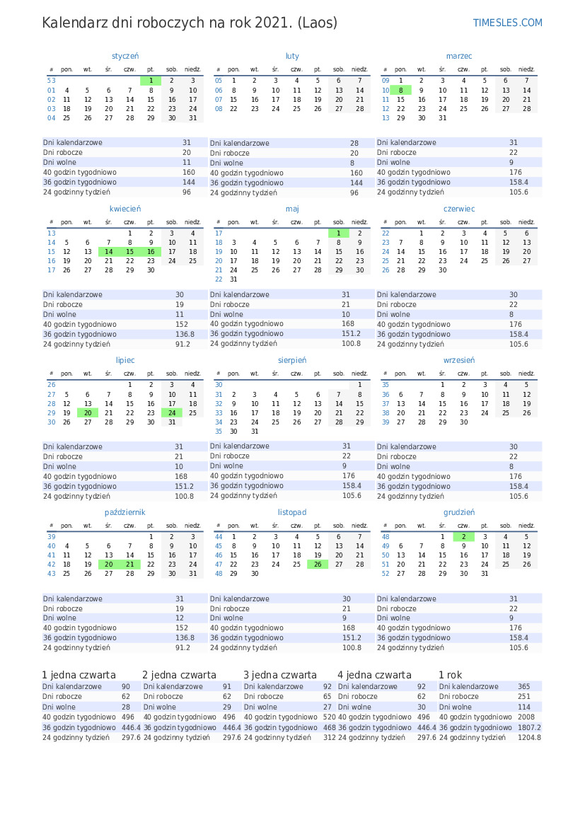 | Dni wolne | 8 |