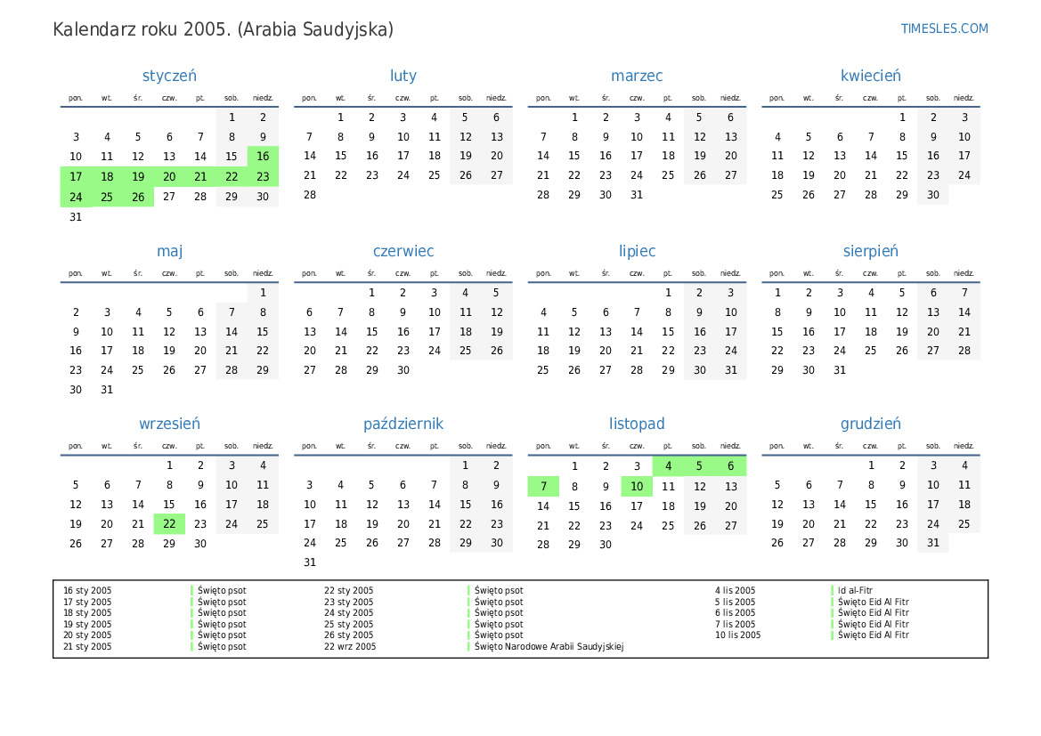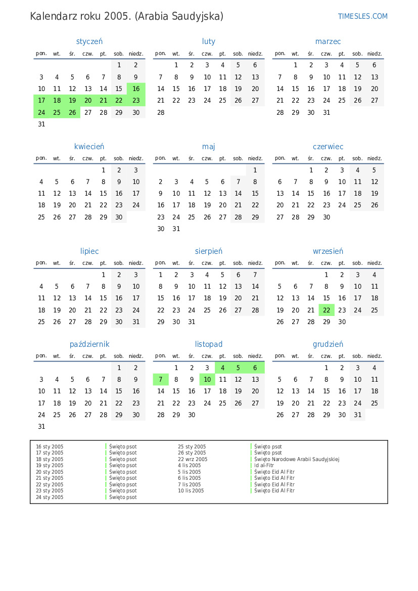 9 lis 2005 Święto Id al-Fitr (tylko sektor publiczny)