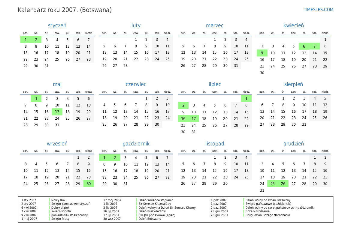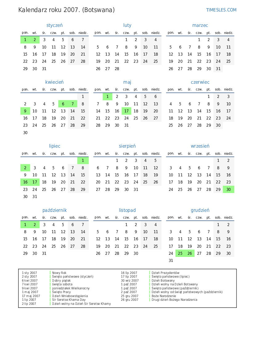 2 sty 2007 Święto państwowe (styczeń)