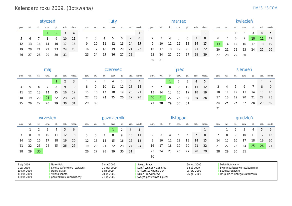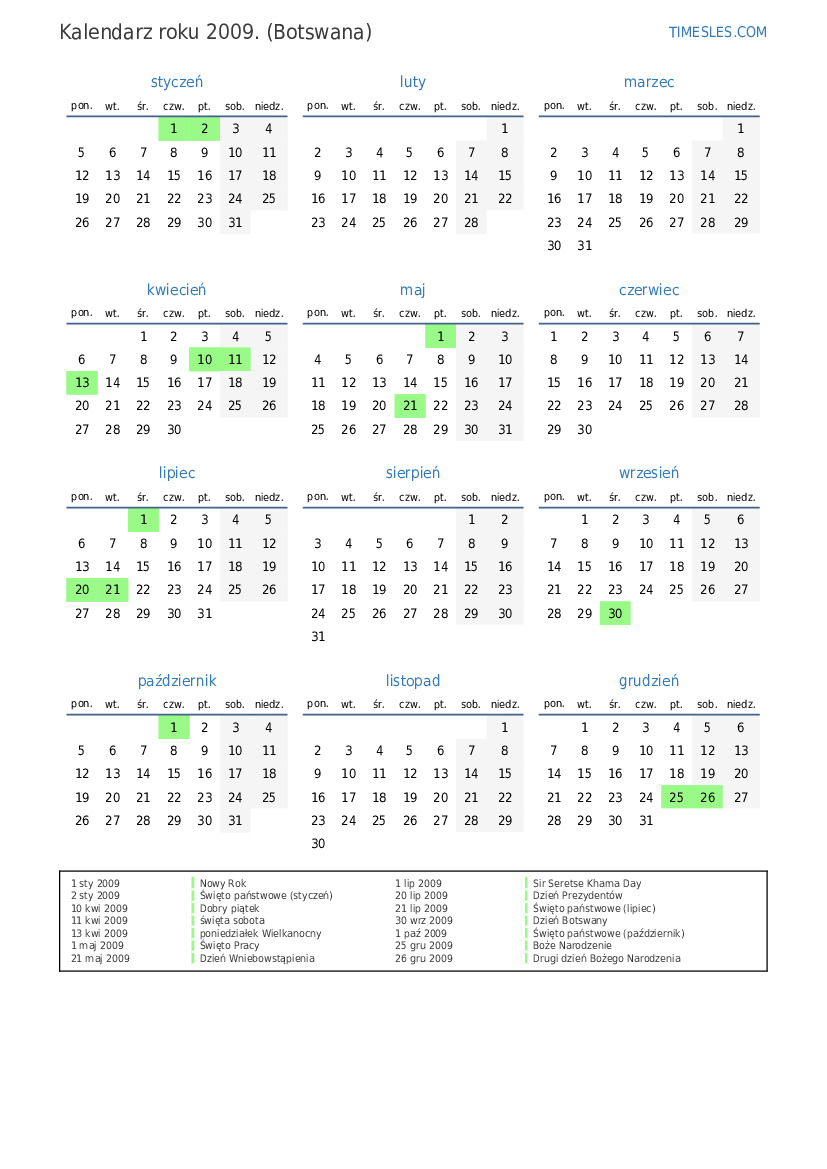 2 sty 2009 Święto państwowe (styczeń)
