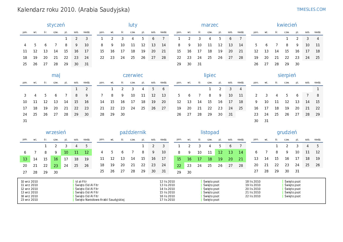15 wrz 2010 Święto Id al-Fitr (tylko sektor publiczny)