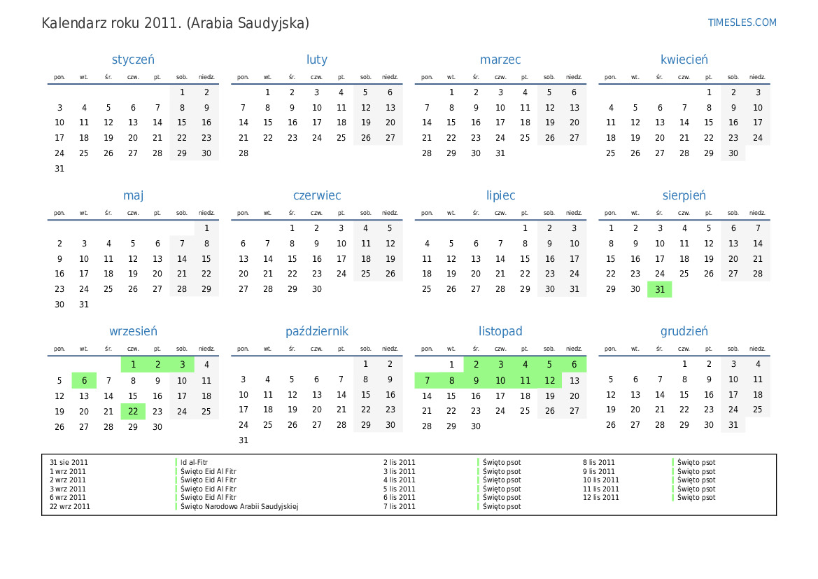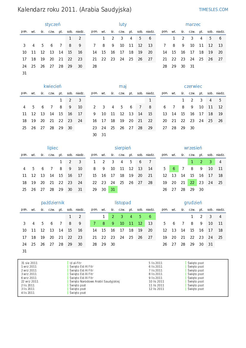 5 wrz 2011 Święto Id al-Fitr (tylko sektor publiczny)