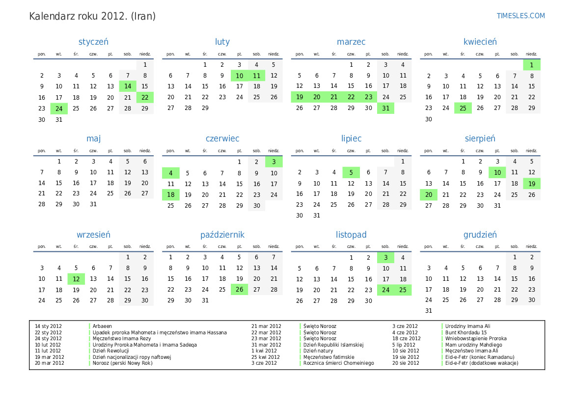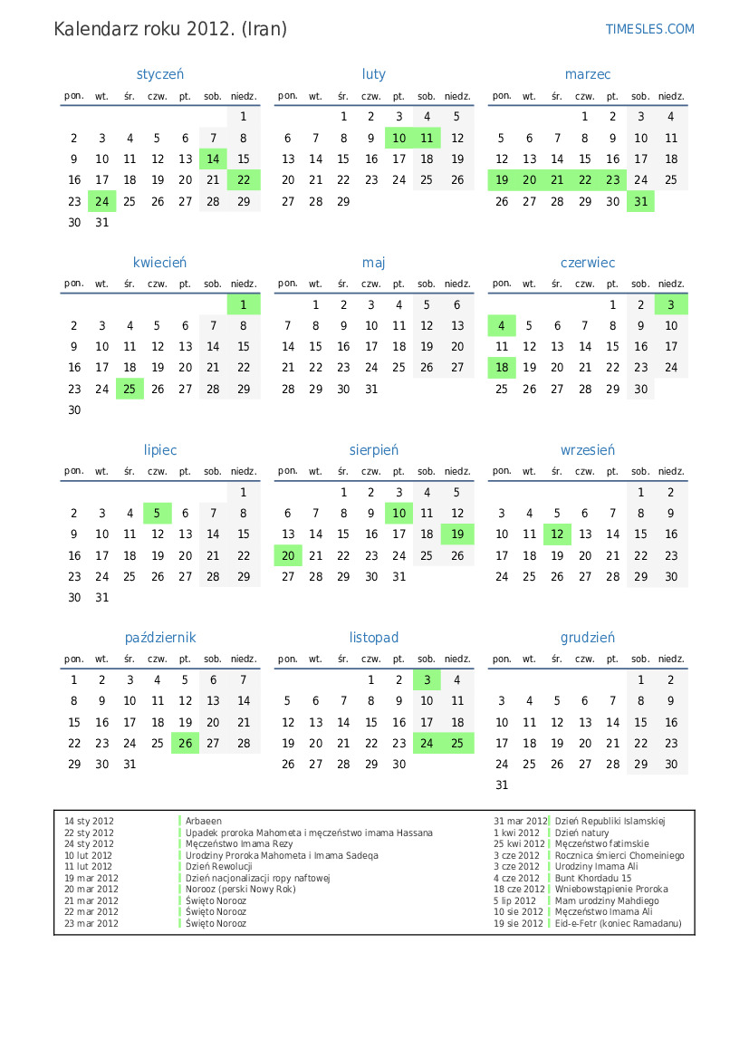 20 sie 2012 Eid-e-Fetr (dodatkowe wakacje)