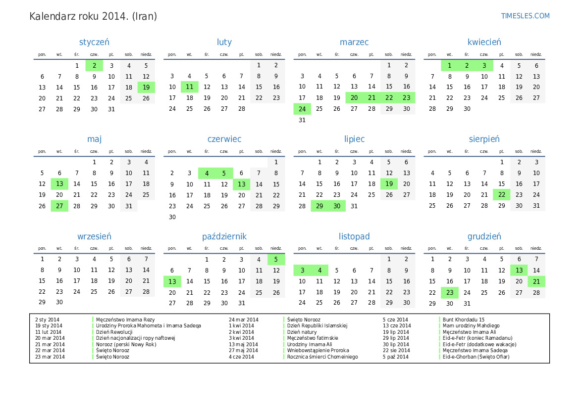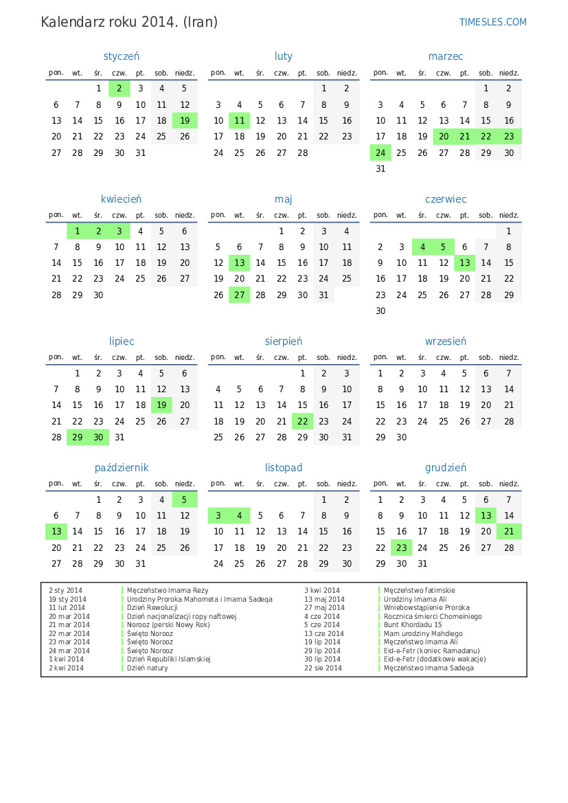 30 lip 2014 Eid-e-Fetr (dodatkowe wakacje)