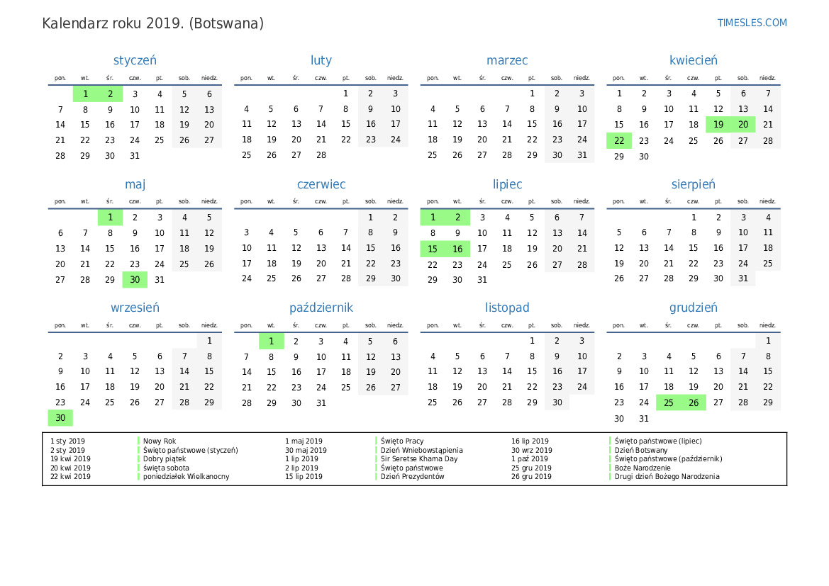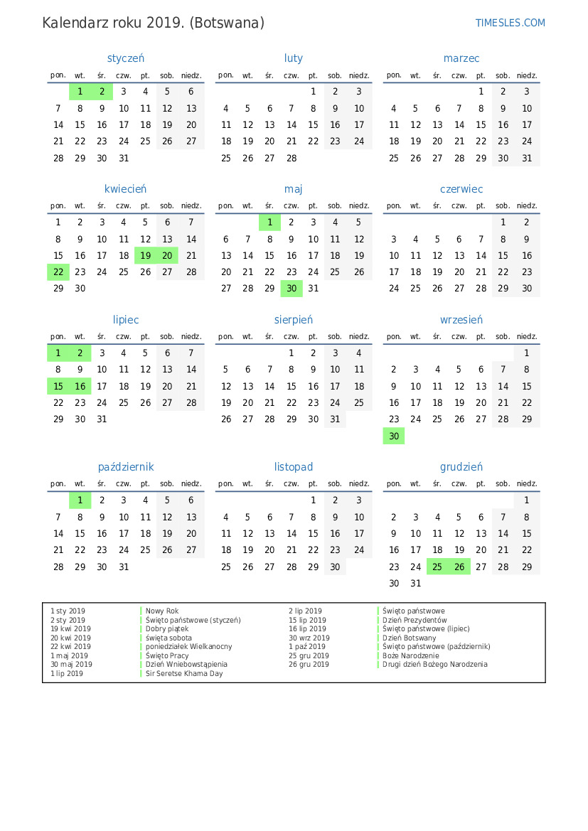 2 sty 2019 Święto państwowe (styczeń)