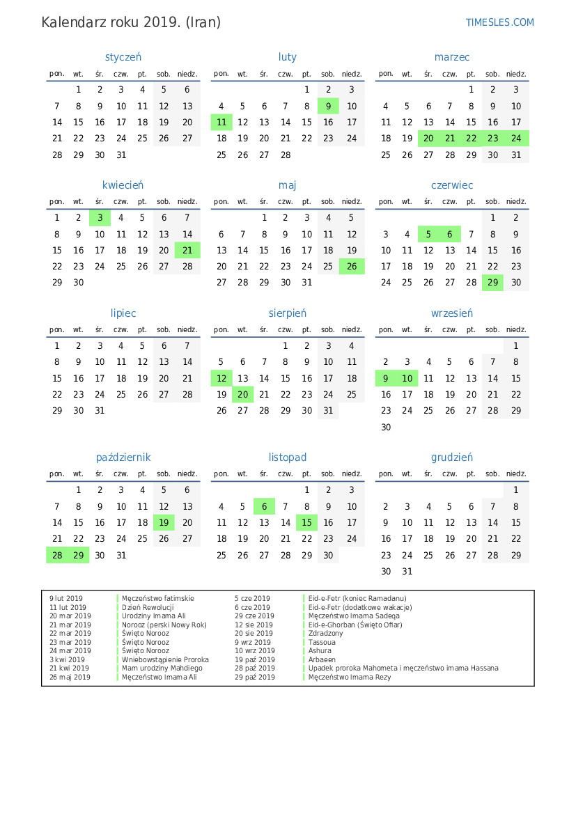 6 cze 2019 Eid-e-Fetr (dodatkowe wakacje)