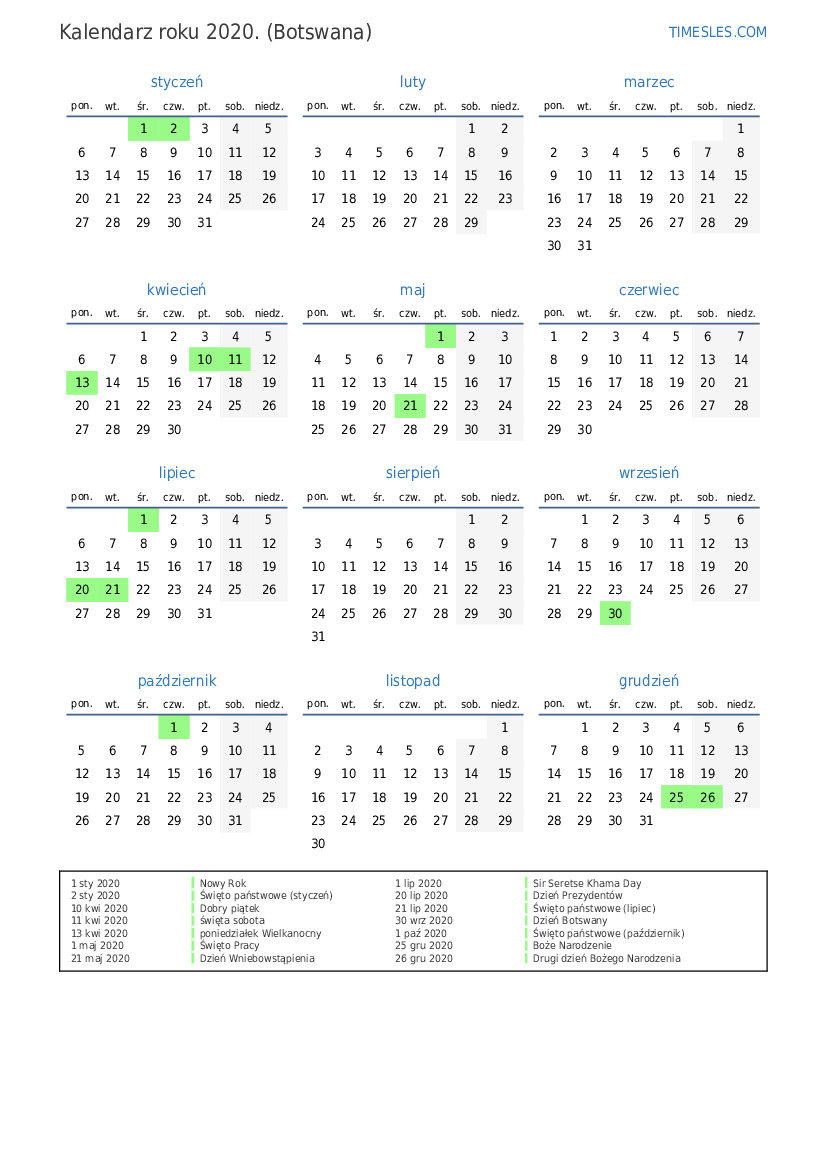 2 sty 2020 Święto państwowe (styczeń)
