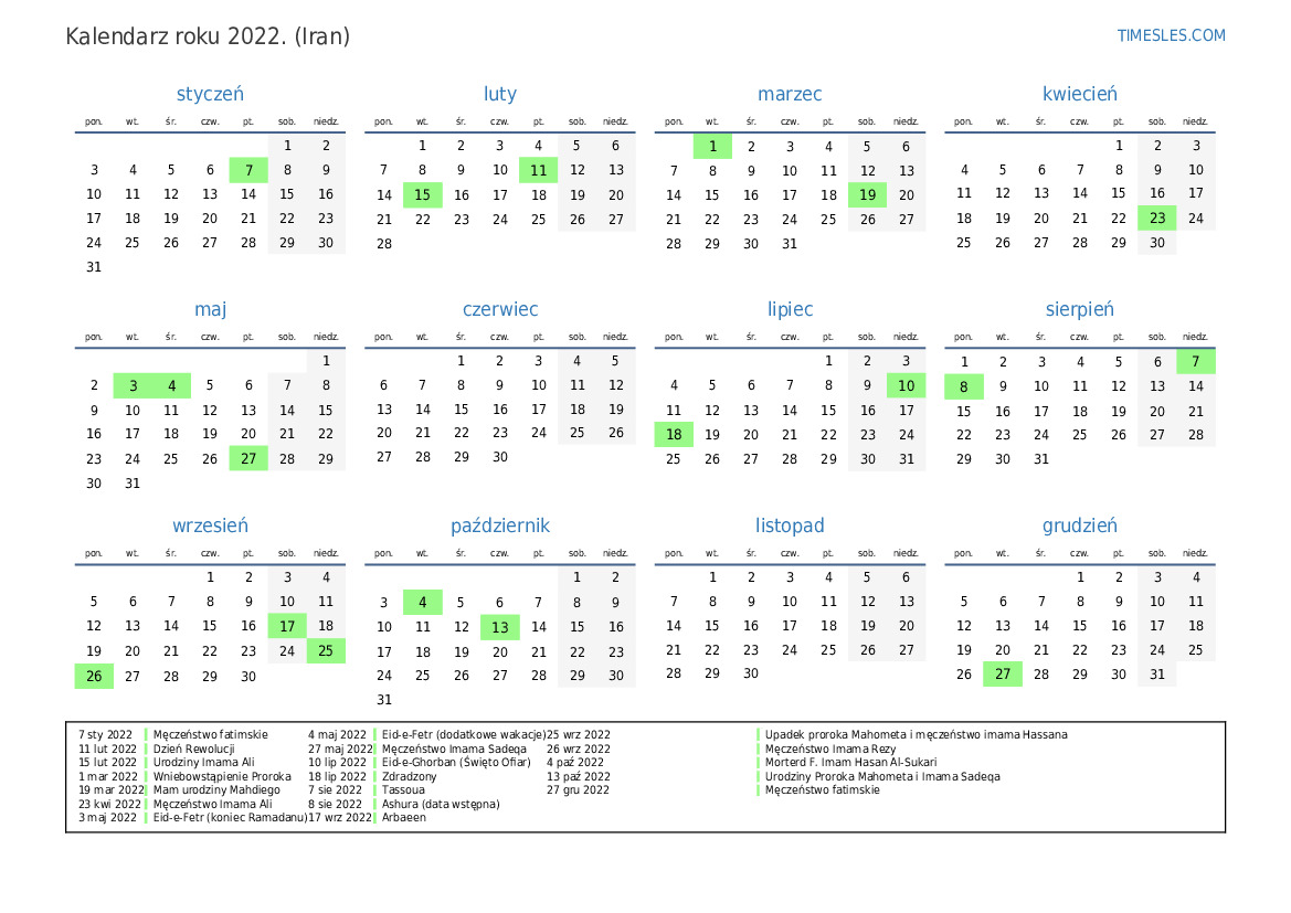4 maj 2022 Eid-e-Fetr (dodatkowe wakacje)