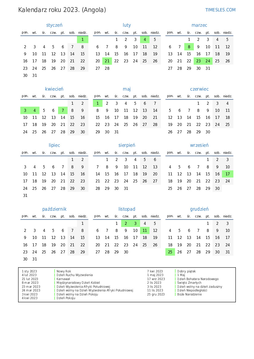 24 mar 2023 Dzień wolny na Dzień Wyzwolenia Afryki Południowej