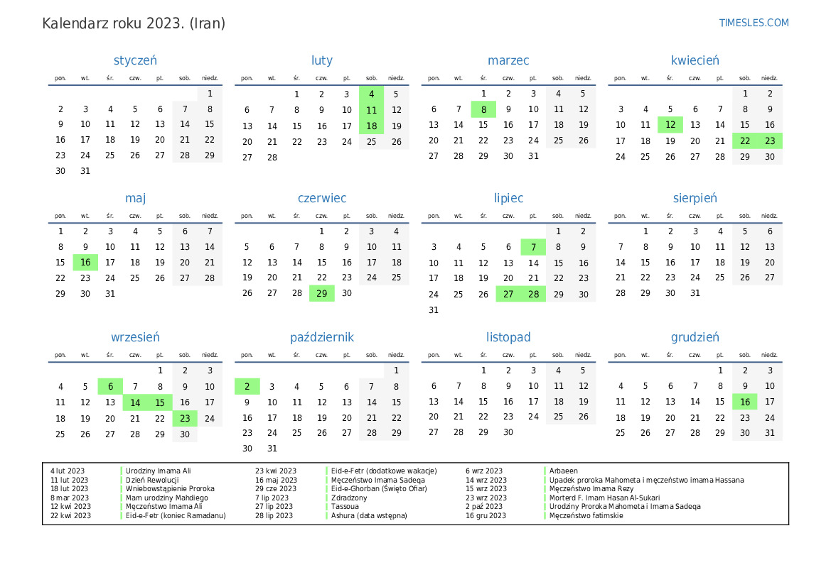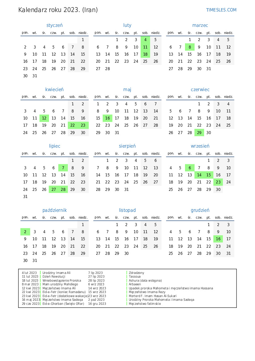 23 kwi 2023 Eid-e-Fetr (dodatkowe wakacje)