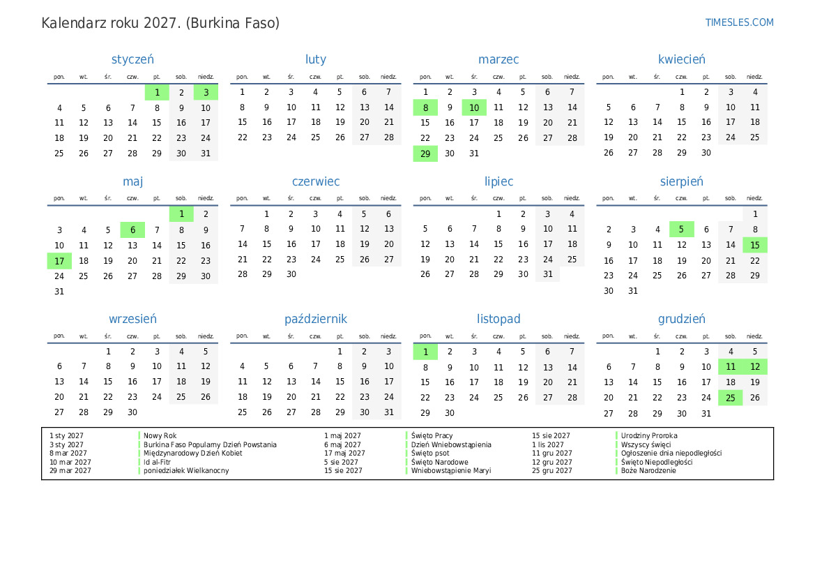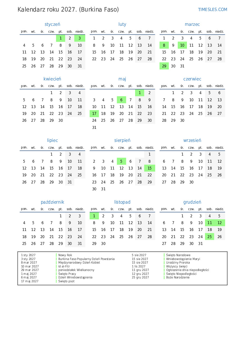 3 sty 2027 Burkina Faso Popularny Dzień Powstania