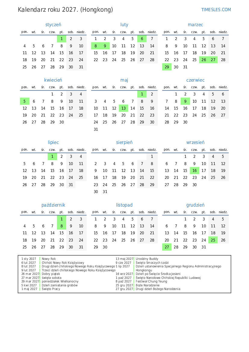 1 paź 2027 Święto Narodowe Chińskiej Republiki Ludowej