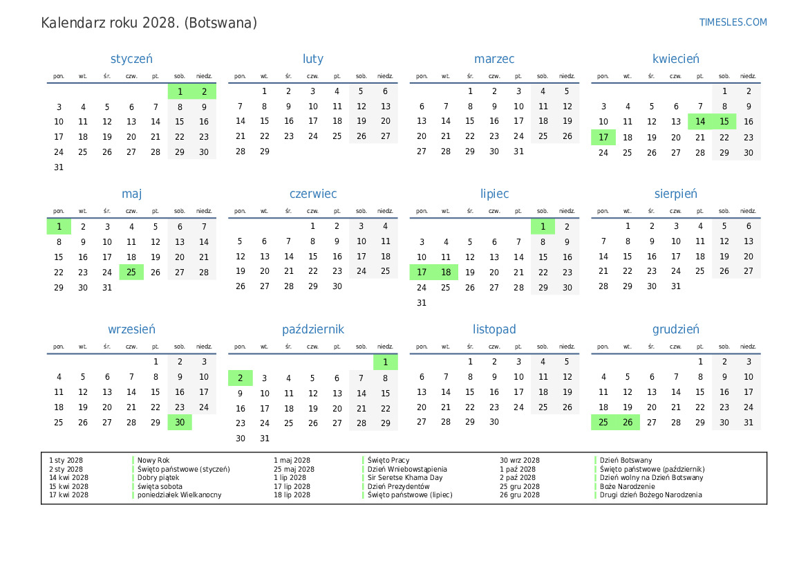 2 paź 2028 Dzień wolny na Dzień Botswany