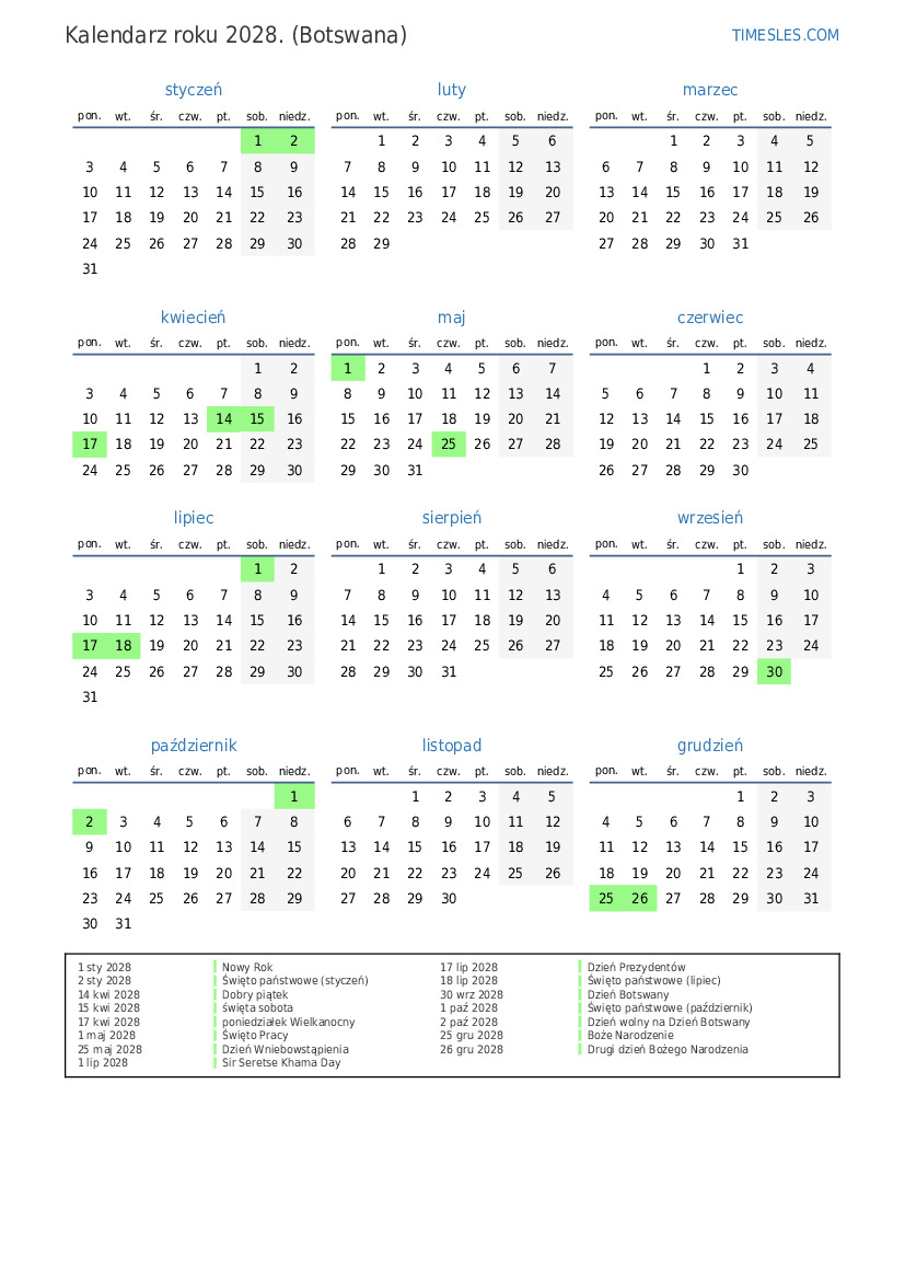 2 sty 2028 Święto państwowe (styczeń)