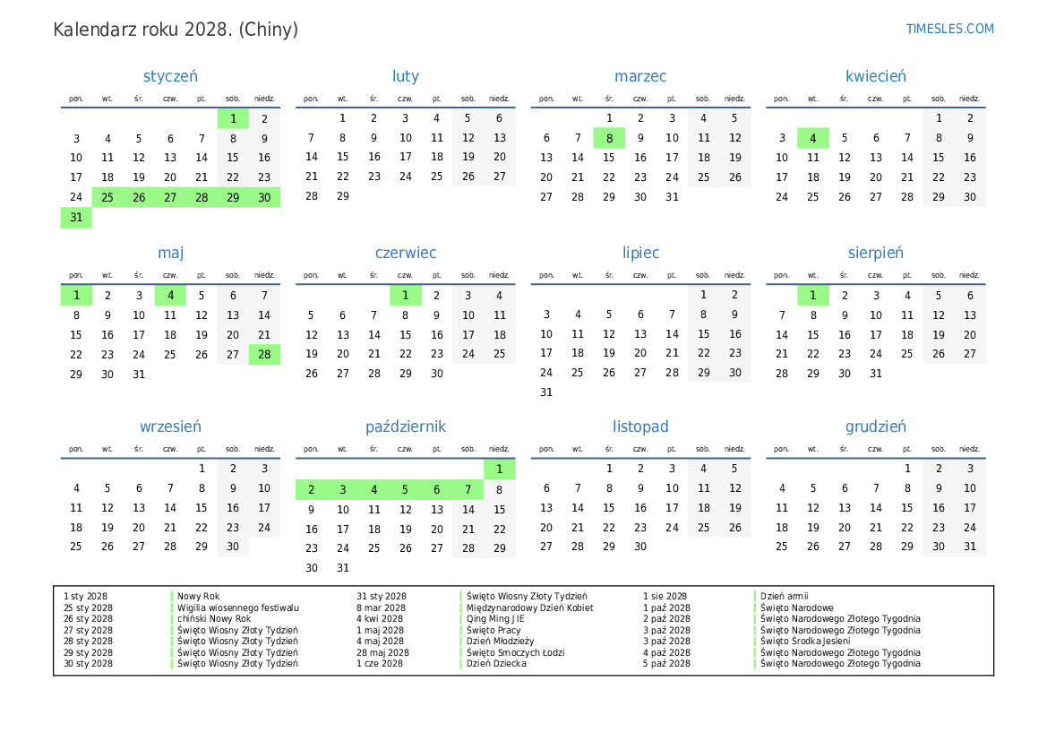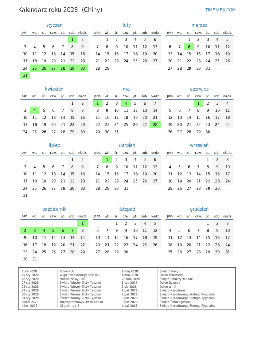 31 sty 2028 Święto Wiosny Złoty Tydzień