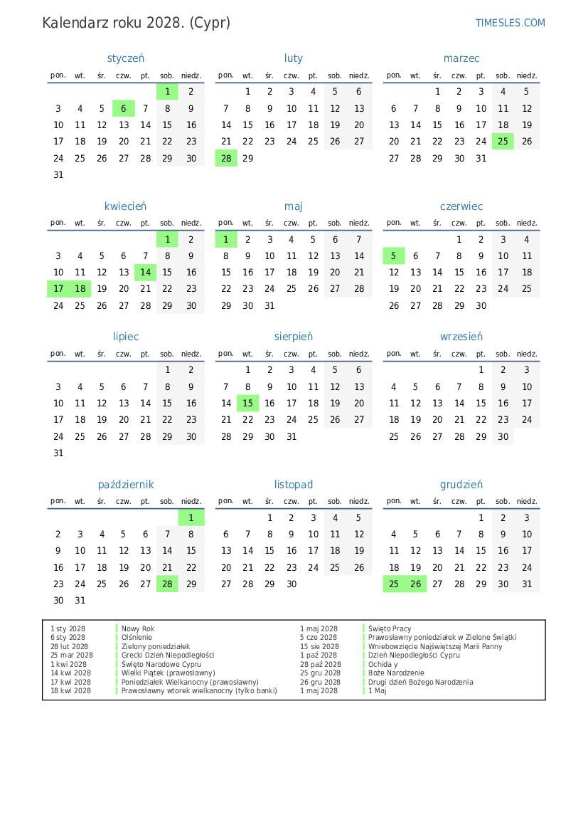 1 kwi 2028 Święto Narodowe Cypru
