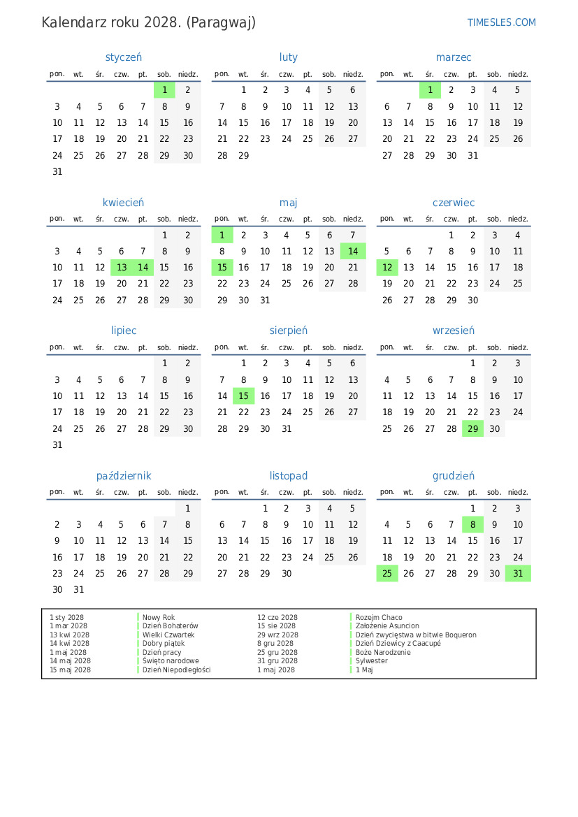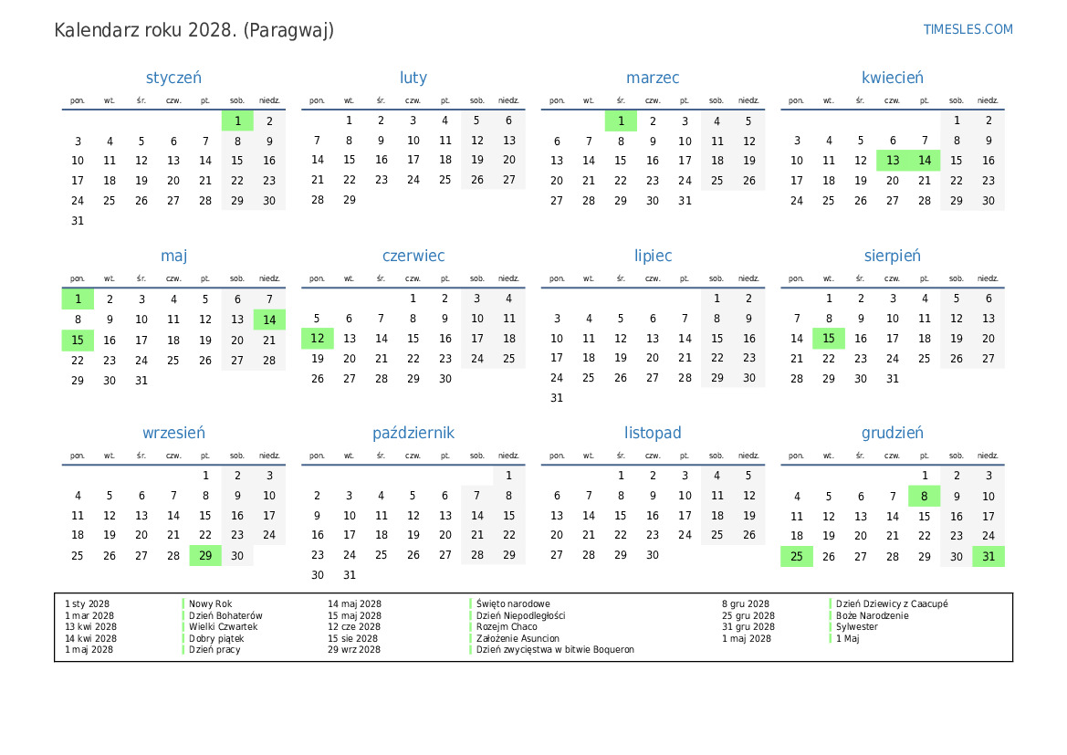 14 maj 2028 Święto narodowe