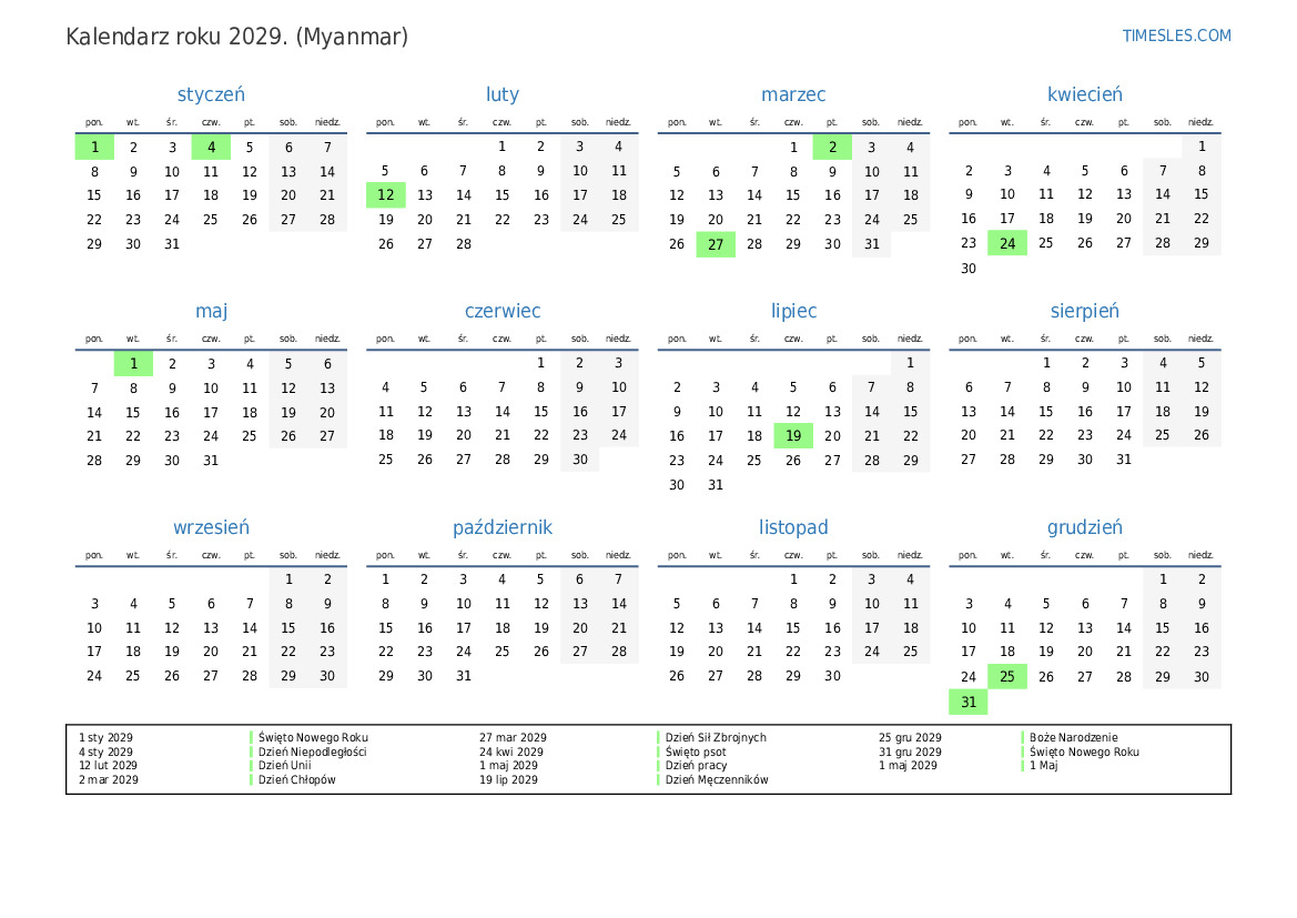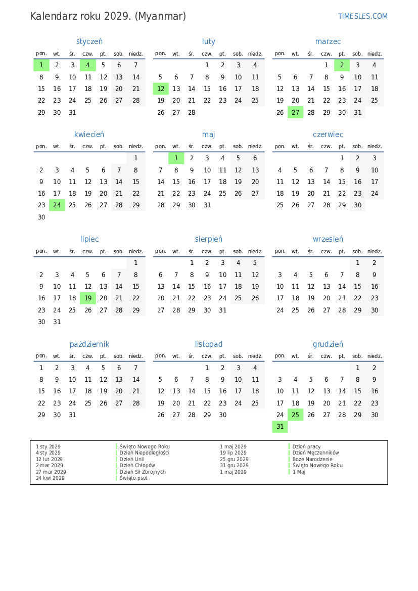1 sty 2029 Święto Nowego Roku