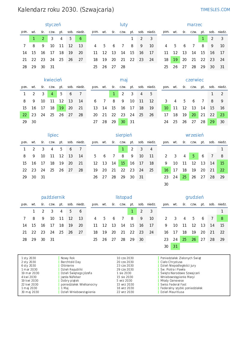 10 cze 2030 Poniedziałek Zielonych Świąt