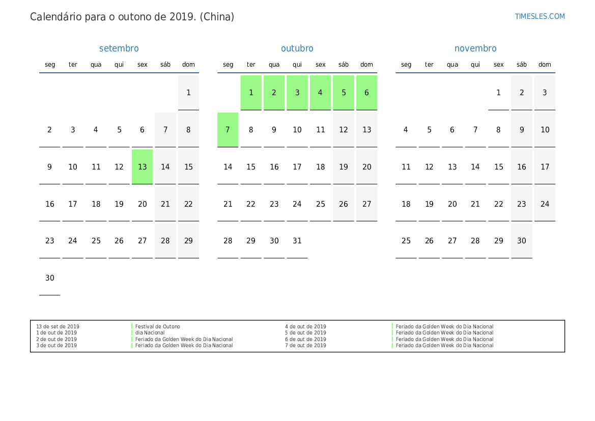 7 de out de 2019 Feriado da Golden Week do Dia Nacional