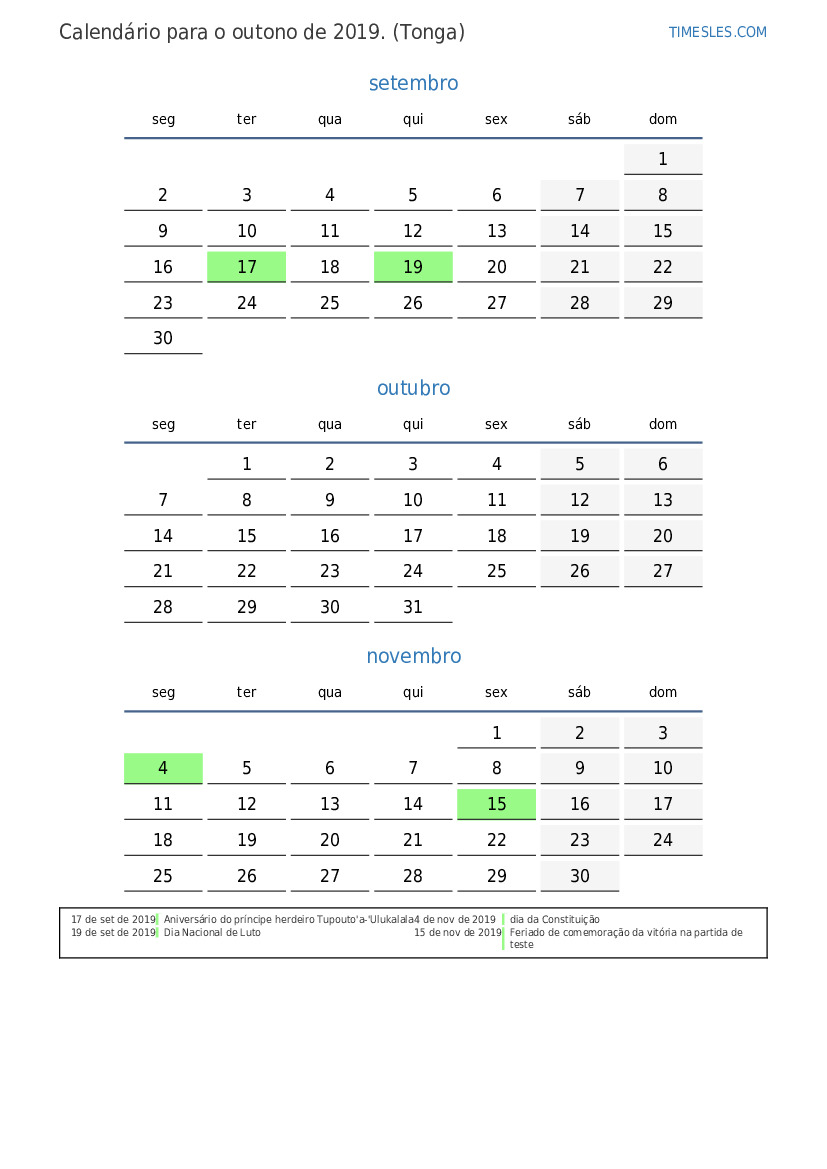 15 de nov de 2019 Feriado de comemoração da vitória na partida de teste
