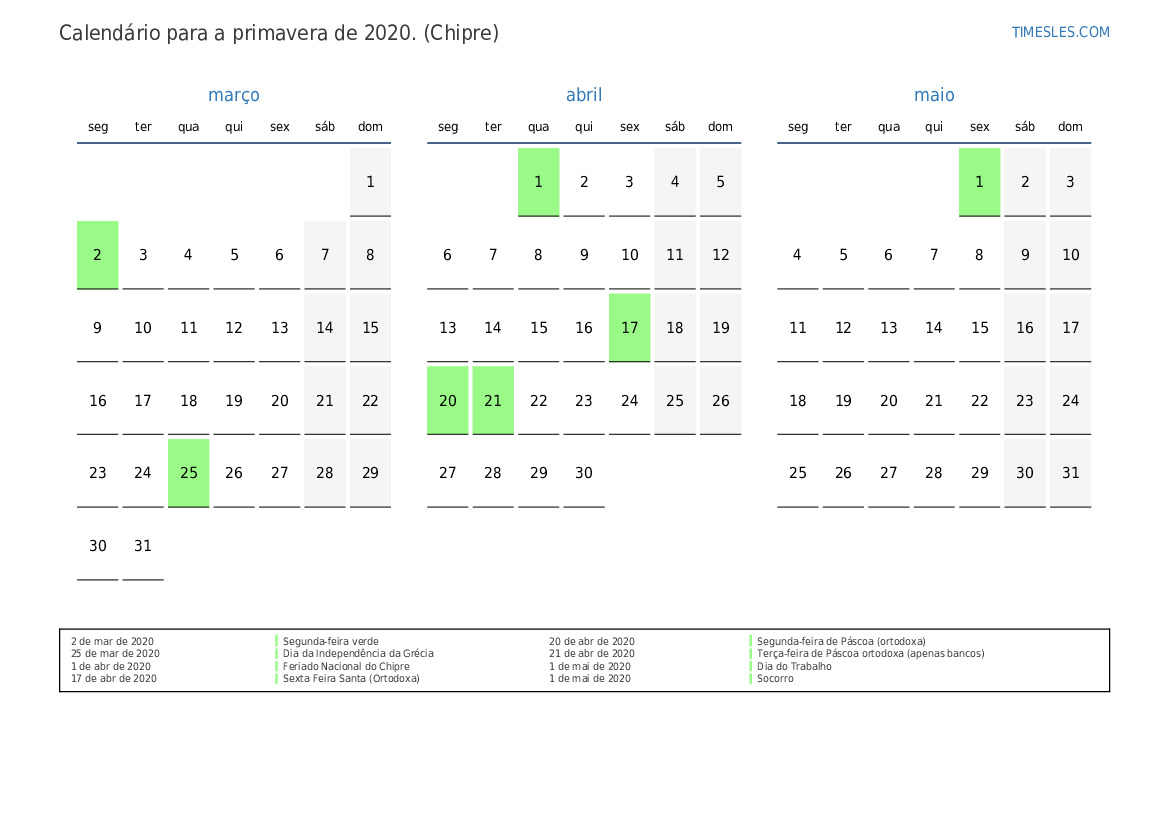 1 de abr de 2020 Feriado Nacional do Chipre