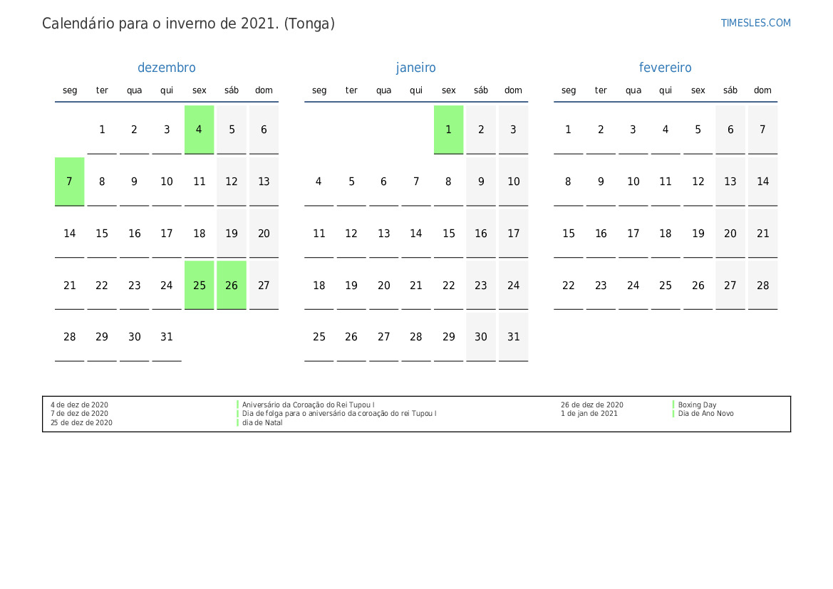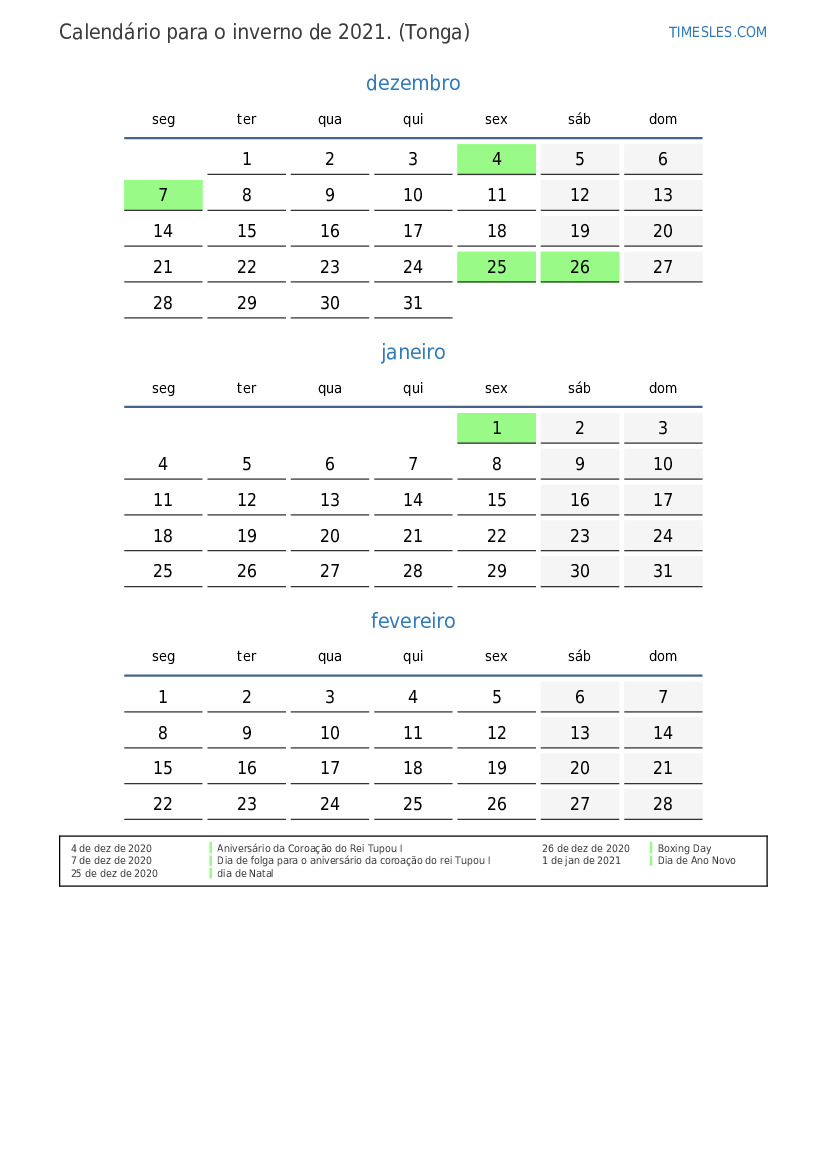 7 de dez de 2020 Dia de folga para o aniversário da coroação do rei Tupou I