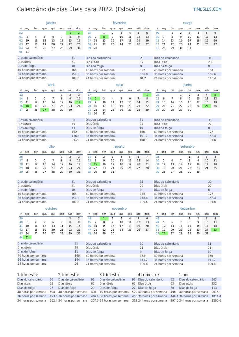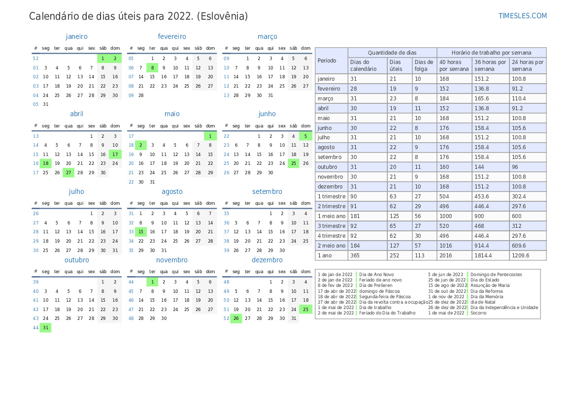 Dias úteis para março de 2022. Há 1 feriado e dia de folga na Eslovênia em março de 2022.