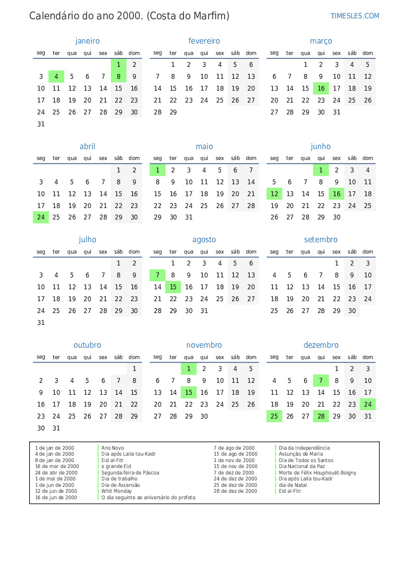 1 de nov de 2000 Dia de Todos os Santos