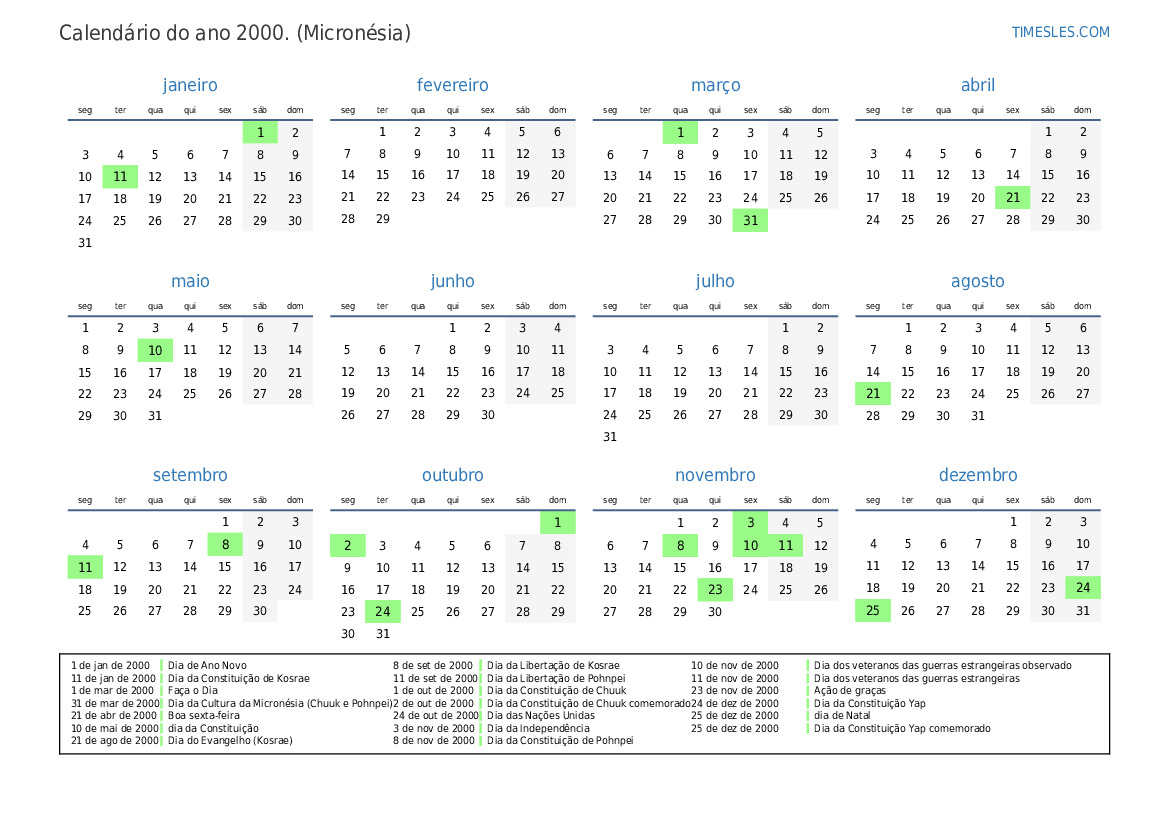 31 de mar de 2000 Dia da Cultura da Micronésia (Chuuk e Pohnpei)