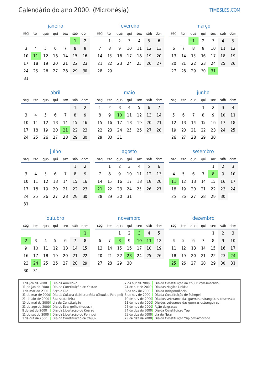 11 de jan de 2000 Dia da Constituição de Kosrae