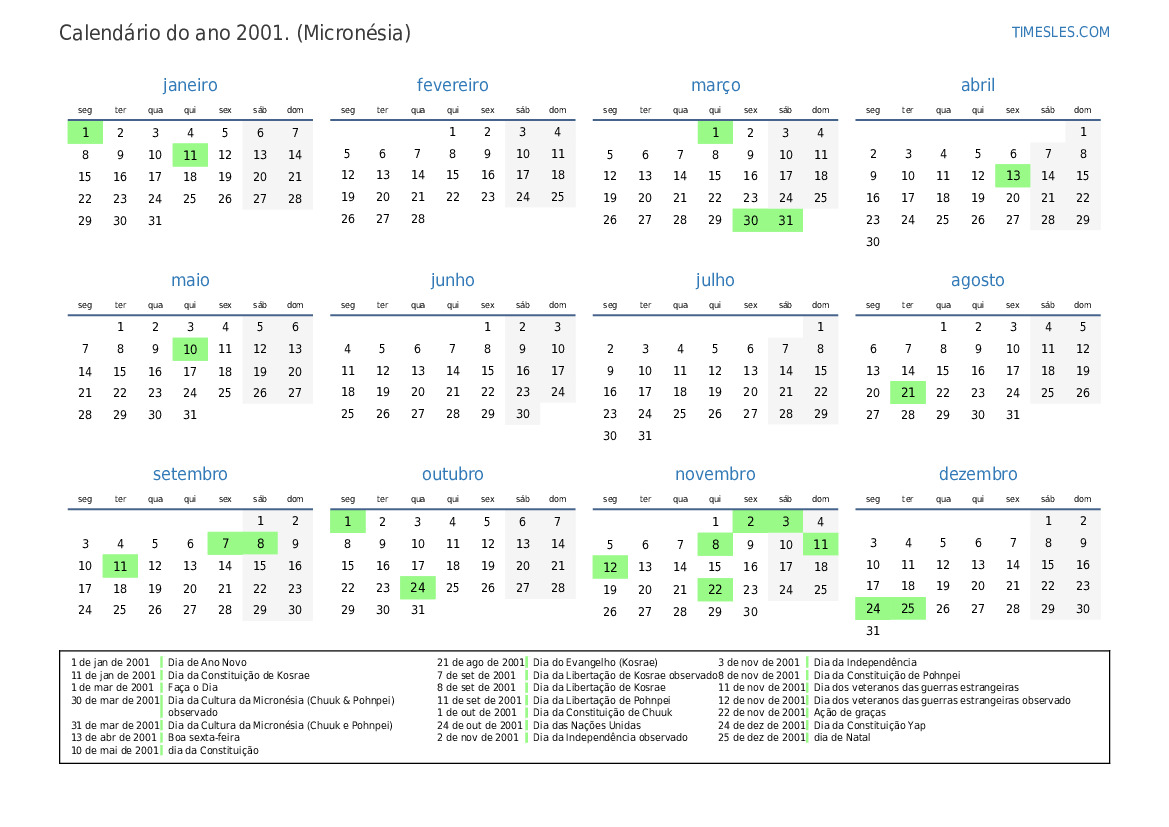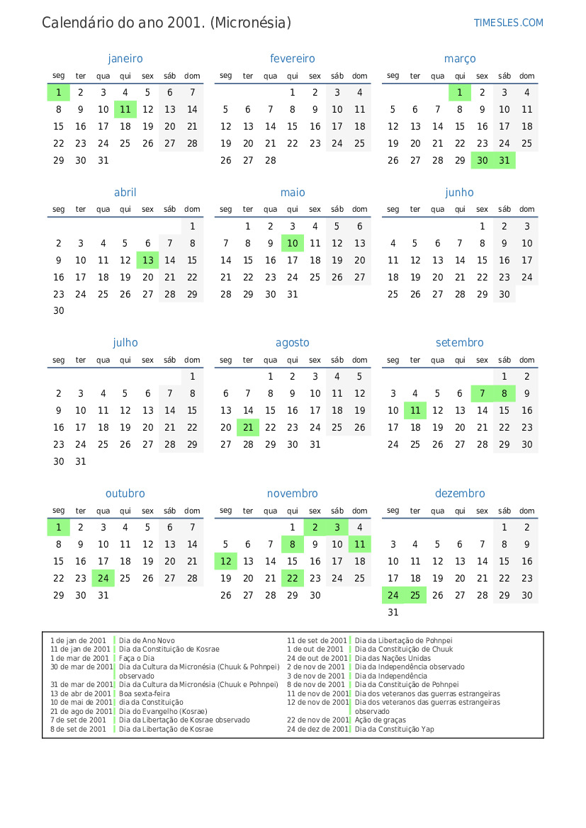 11 de jan de 2001 Dia da Constituição de Kosrae