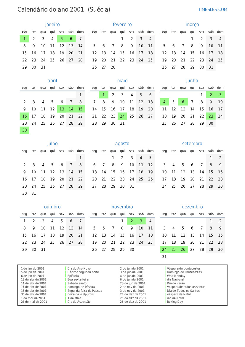 1 de jan de 2001 Dia de Ano Novo